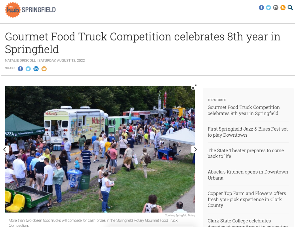 The Springfield Rotary’s Gourmet Food Truck Competition is celebrating its 8th year at Veteran’s Park in Springfield, and has become an annual staple of the summer months.